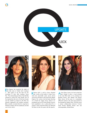 2. Ekta plans to use the tune for her atrina Kaif is said to have directed ctress Sunny Leone is all set to shed her