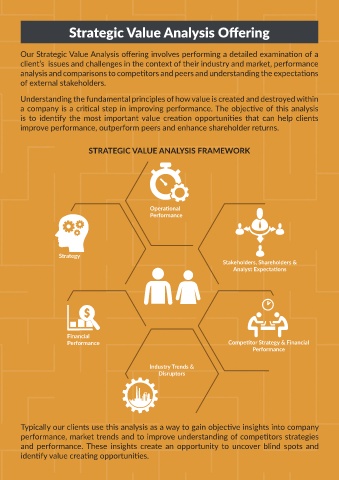 Our Strategic Value Analysis offering involves performing a detailed examination of a Our analysis is developed based on rigorous financial analysis and leverages a value
